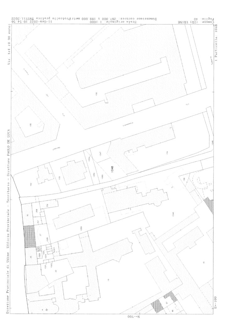 The real estate property is located in the central area of Udine (population 98,304), the capital of the province of the same name in the Friuli-Venezia-Giulia region. The historic centre of the city, with the Castle and Piazza della Libertà, is 700 meters from the property (10 minutes on foot), while the Udine train station, which allows one to reach the cities of Milan, Rome, Trieste and Venice, is 500 meters from the area (7 minutes on foot). The “Udine Sud” exit of the A-23 motorway junction (Tarvisio-Palmanova) is 8.5 km from the property, and allows one to quickly reach the A-4 motorway (Turin-Milan-Trieste), a road that crosses Northern Italy from West to East. Trieste’s airport is 43 km from the area (30-40 minutes by car).