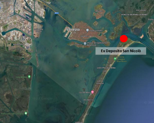 "San Nicolò" fuel depot used by the Navy, located in the city of Venice, in the locality of San Nicolò di Lido, near the Bocche di Lido, the only sea access channel to the city, and in the vicinity of the Giovanni Nicelli Airport. The area covers 14,000 sqm and partly overlooks the coast, where three cisterns with service warehouses and a pier for docking ships can be found. The area will be redeveloped through a public-private partnership, in the project financing mode.