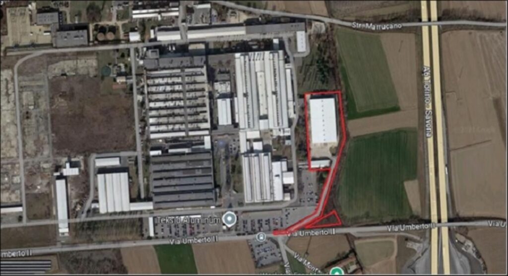 Il compendio immobiliare si compone di un capannone ad uso industriale di 4.500 m² a campata unica, libero su quattro lati con altezza di 12 metri, e di un edificio separato da esso ad un piano, destinato ad uffici, magazzini e spogliatoi di 615 m² con portico antistante; è presente inoltre un locale centrale termica posto sul confine sud del complesso, retrostante la palazzina uffici e due fabbricati secondari ed indipendenti sul lato nord dell’immobile (175 m²) per ricovero mezzi, officina e locale cabina elettrica. La superficie scoperta complessiva, interamente recintata è di circa 9.500 m², adibita per 4.600,00 m² a piazzali di manovra e parcheggi.