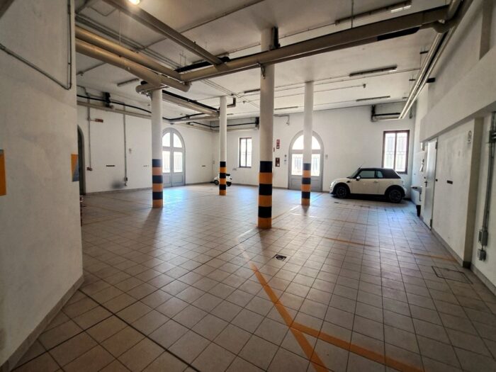 Parcheggi: di proprietà un’ autorimessa al piano terra con 16 posti auto, con ingresso da via Machiavelli.
